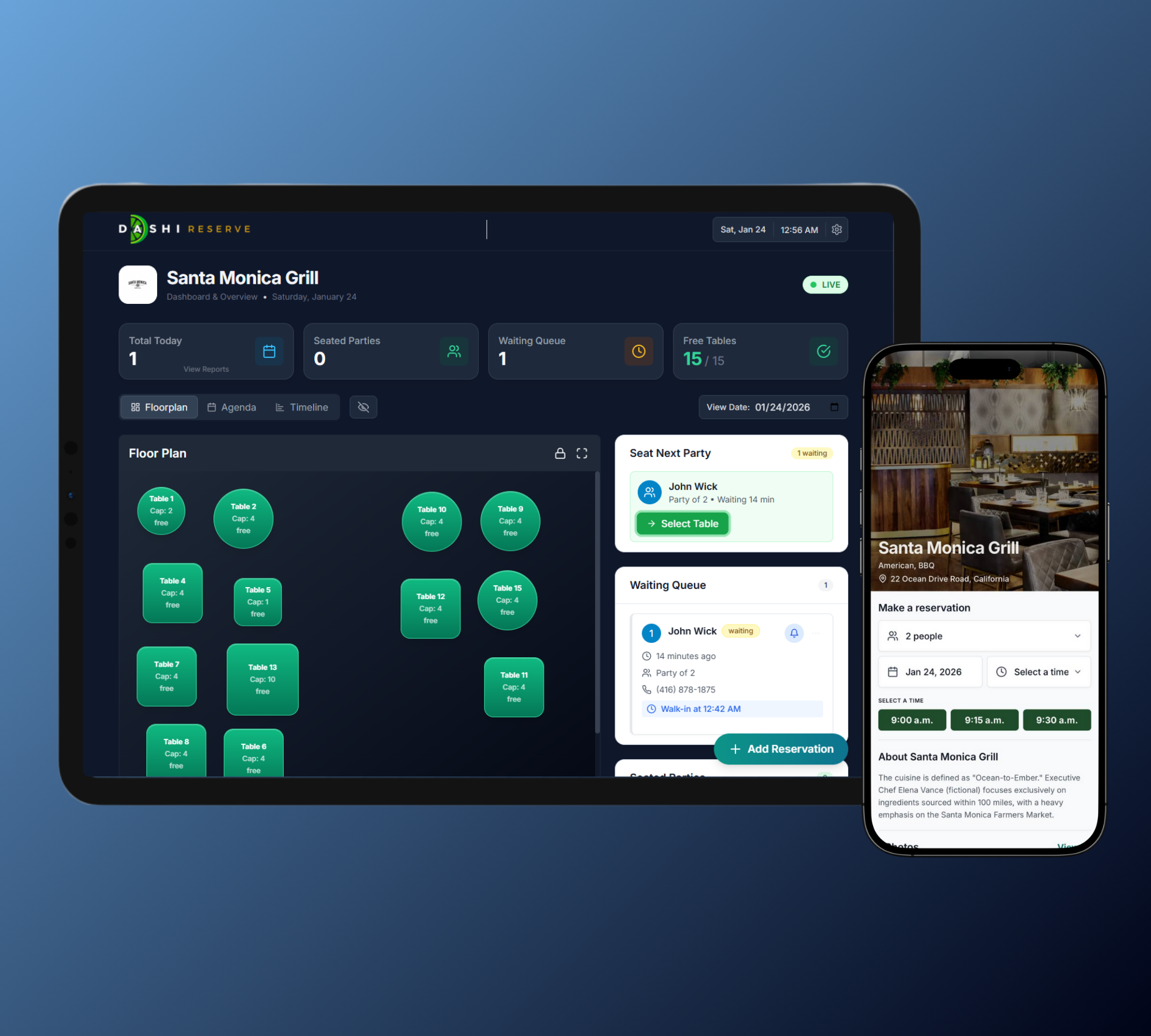 Master the rush. Intelligent visual indicators help you turn tables faster without making guests feel rushed.