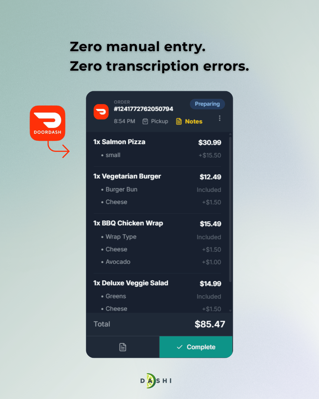 No manual entry means no human error on delivery orders.